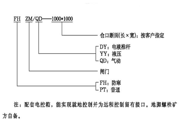 防寒型防竄倉(cāng)無(wú)撒料成套裝車閘門型號(hào)說(shuō)明: